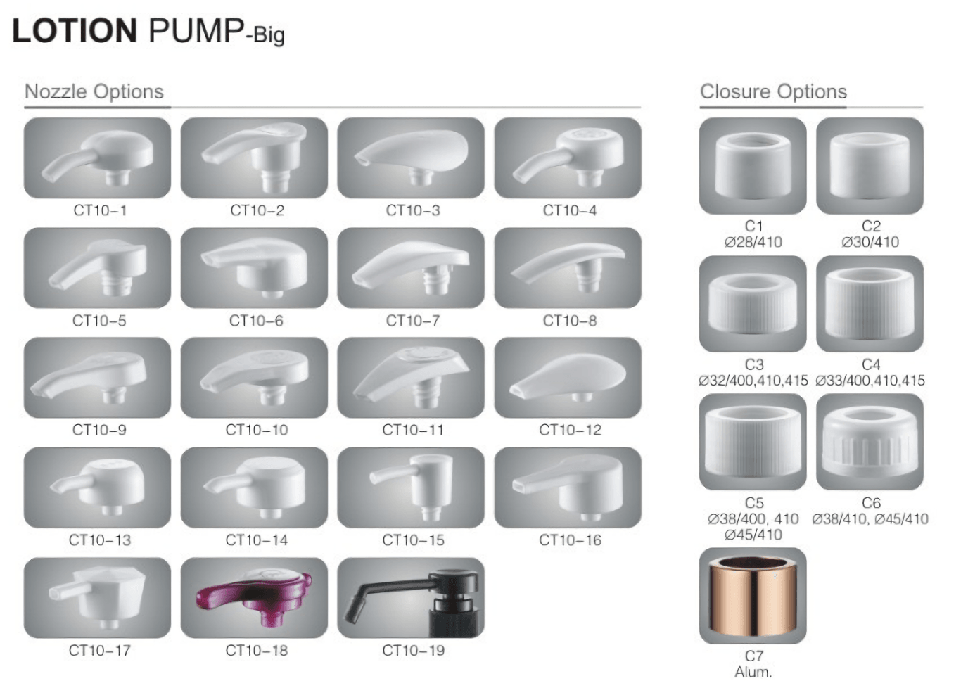 2. বিভিন্ন ধরনের ক্লোজার সাইজ বেশি স্ট্যান্ডার্ড বোতলের সাথে মেলে।