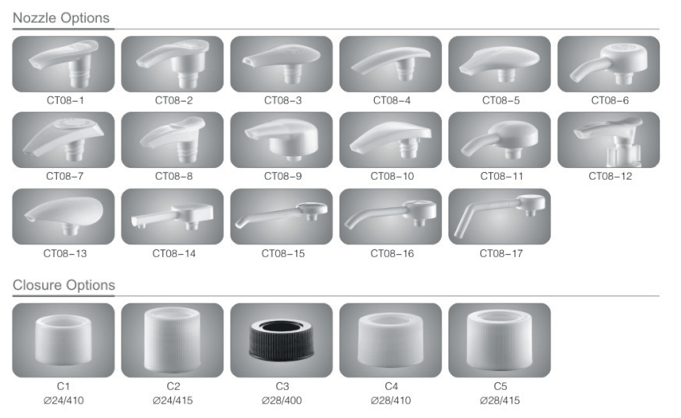 2. বিভিন্ন ধরনের ক্লোজার সাইজ বেশি স্ট্যান্ডার্ড বোতলের সাথে মেলে।
